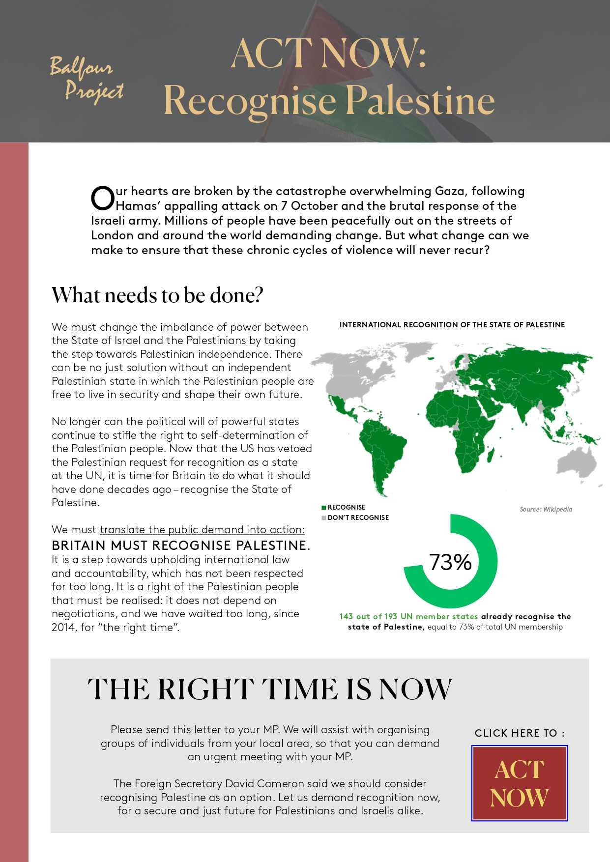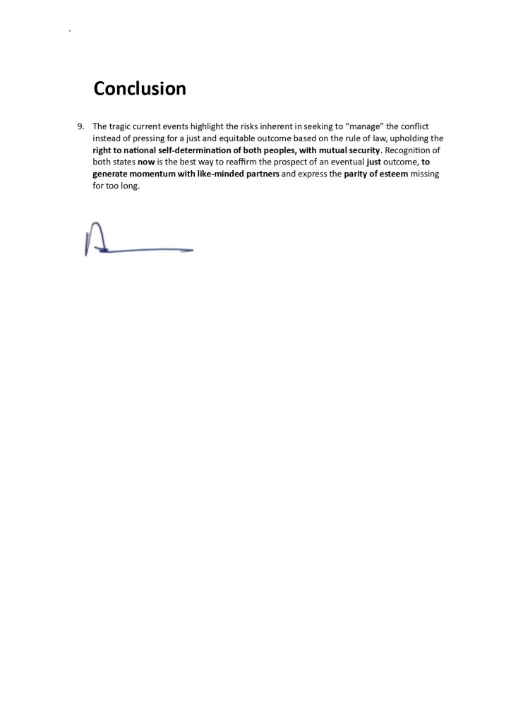 Palestinian self-determination is key to the wellbeing of Palestinians – and of Israelis. The British Government has wasted 10 years and more, waiting for “the right time” to recognise the State of Palestine. Now is the time to recognise Palestine, alongside Israel. Other European Governments plan to do just that.